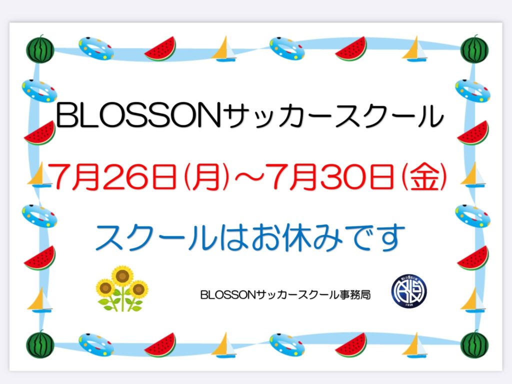 【7月26日(月)〜30日(金)スクール休みのお知らせ】