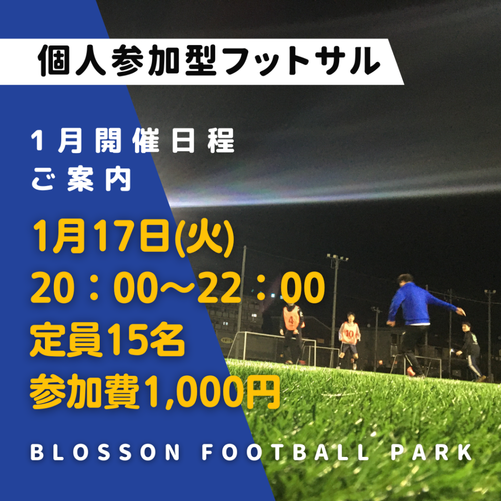 1月の個人参加型フットサルの開催日程のご案内をさせて頂きます😊