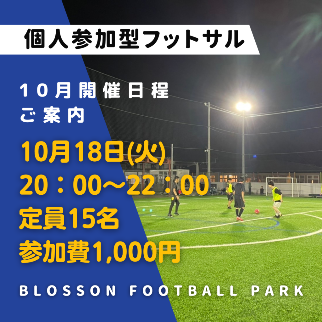 10月の個人参加型フットサルの開催日程のご案内をさせて頂きます😊