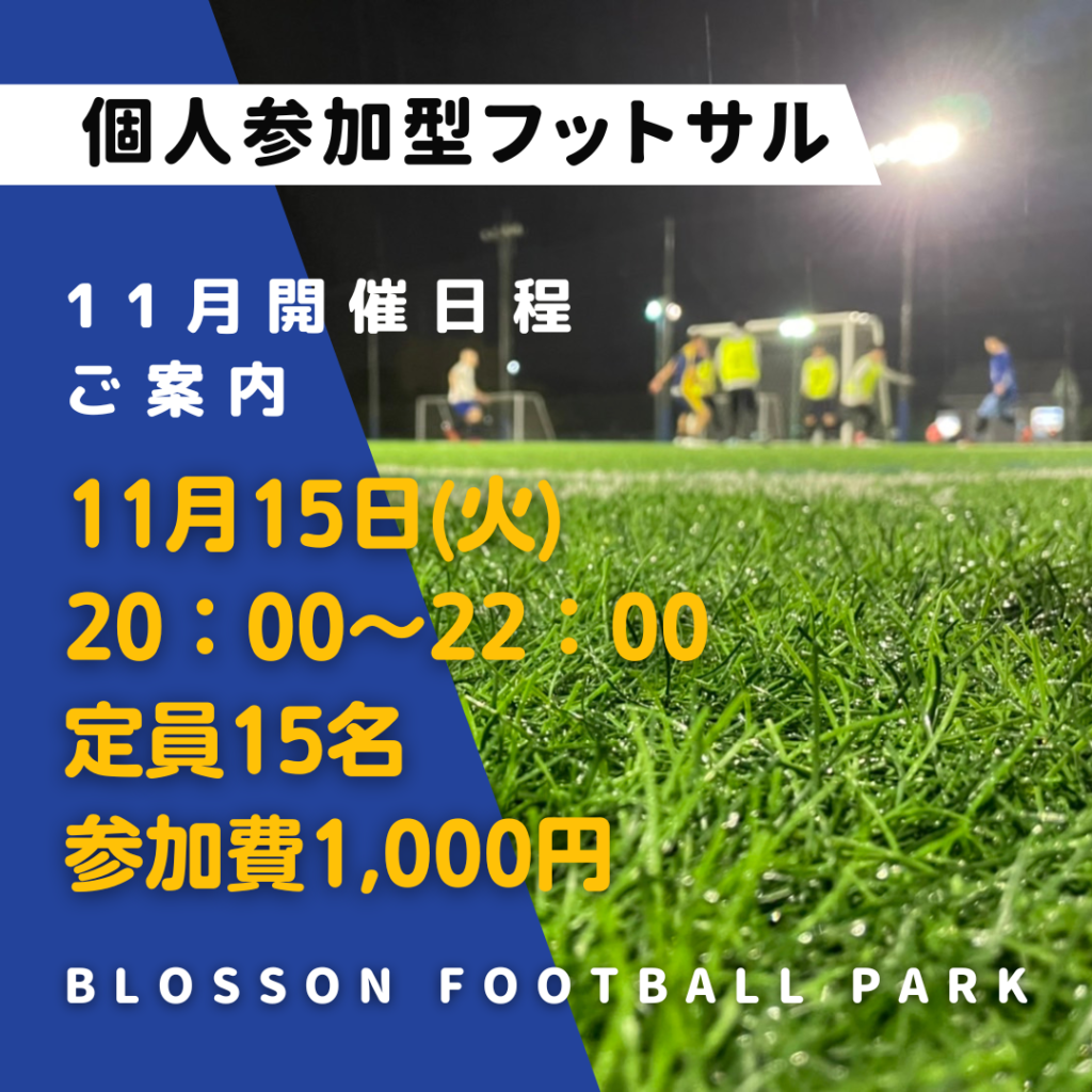 11月の個人参加型フットサルの開催日程のご案内をさせて頂きます😊