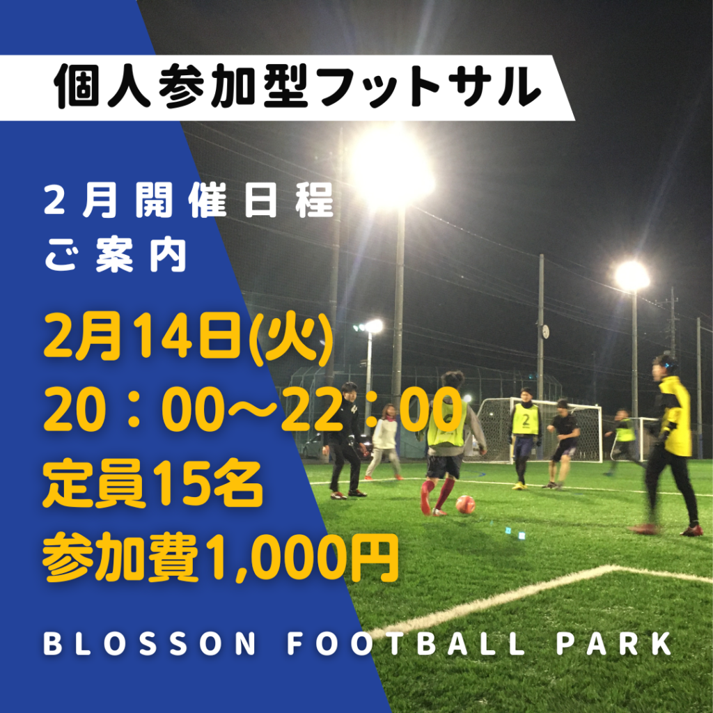 2月の個人参加型フットサルの開催日程のご案内をさせて頂きます😊