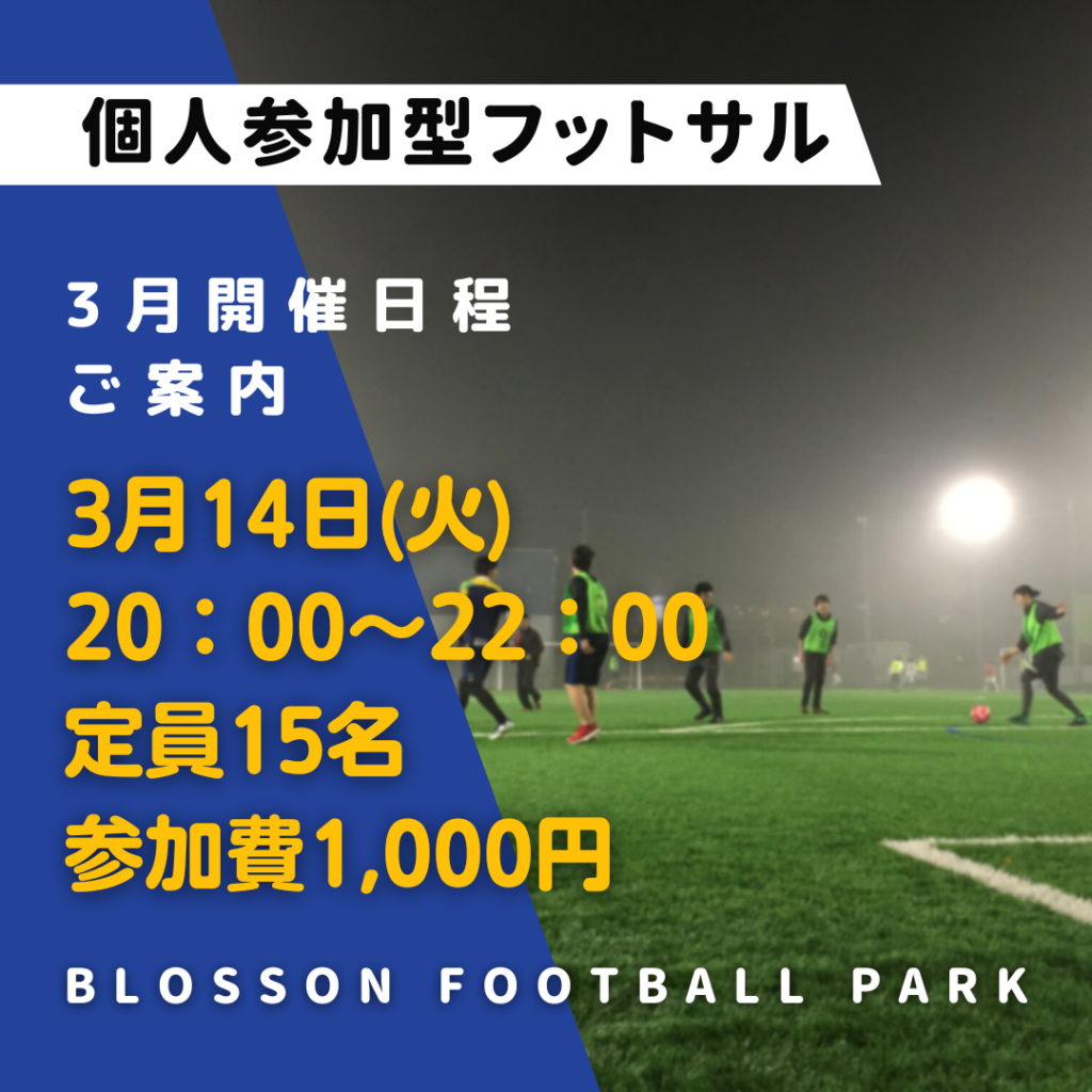 3月の個人参加型フットサルの開催日程のご案内をさせていただきます😊