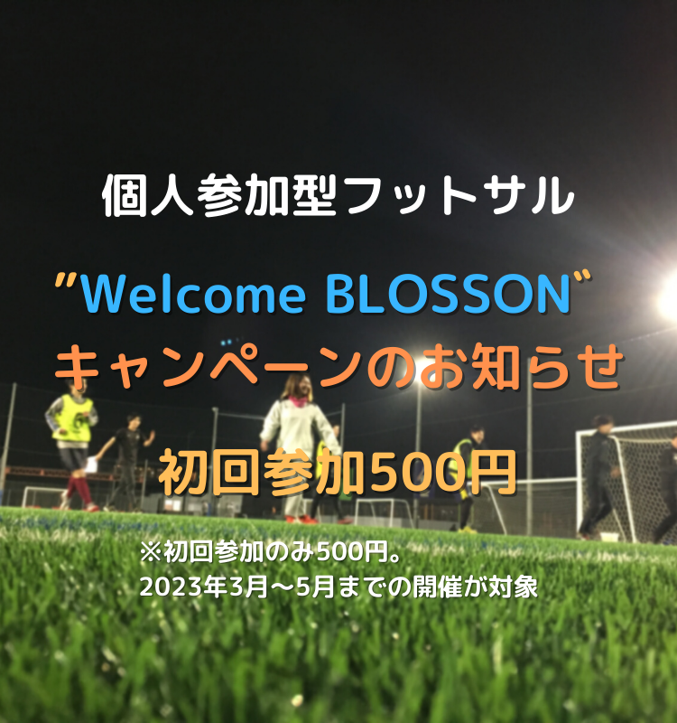 また、”Welcome BLOSSON゛キャンペーンとして、個人参加型フットサル初参加の方を対象に《500円》でご参加いただけます⚽️✨