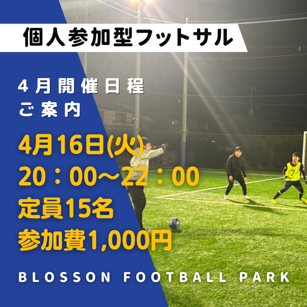 【⚽4月個人参加型フットサル開催日程ご案内⚽】