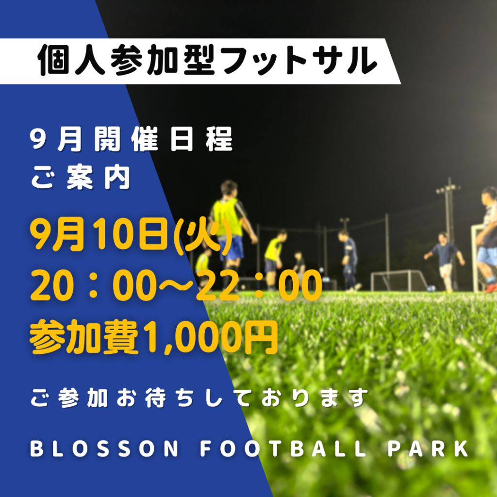 9月の個人参加型フットサルの開催日程のご案内をさせていただきます😊