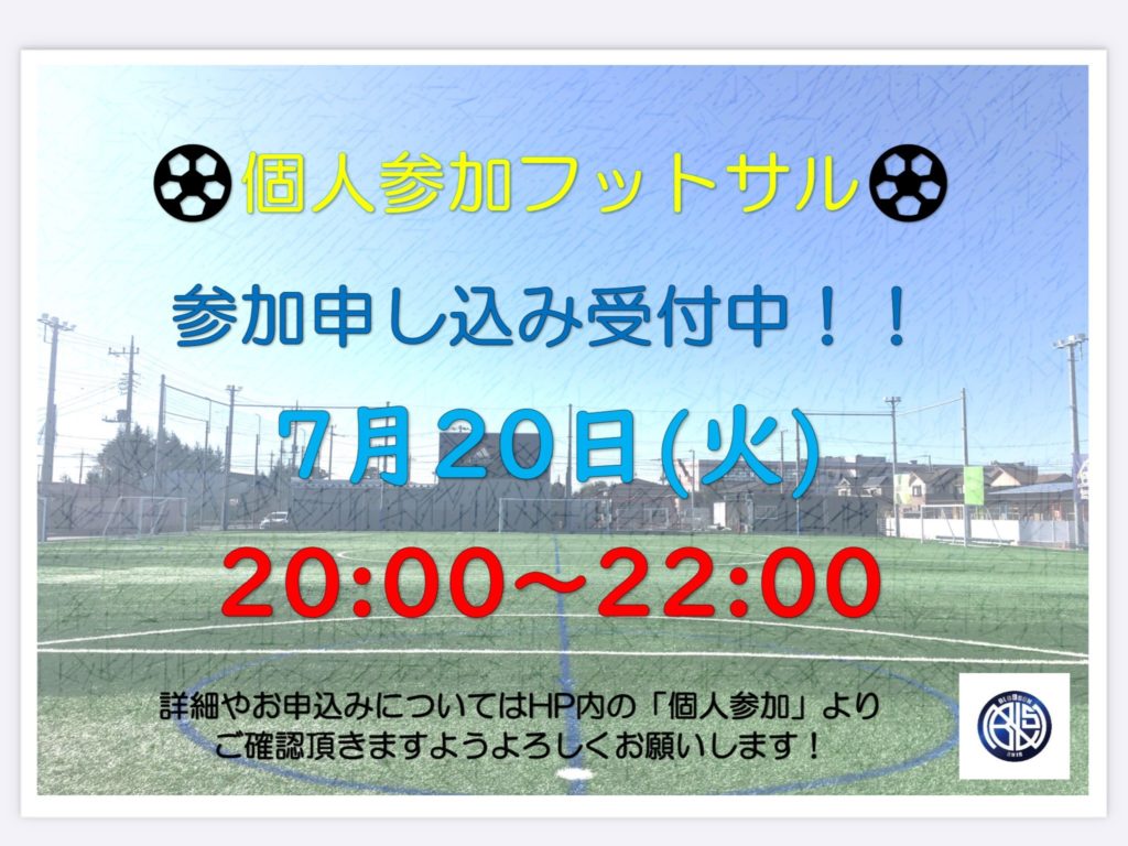 20日(火)の個人参加フットサルの参加申込みを受付中です❗️